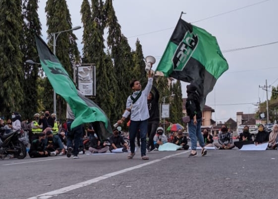 Hisam Alfarizi,Koordinator Aksi yang juga Sekertaris Cabang Himpunan Mahasiswa Islam (HMI) Ponorogo menggugat,”tujuan kami dari HMI Cabang Ponorogo melakukan aksi turun jalan hari ini diantaranya adalah tidak luput dari penolakan terkait UU Cipta Kerja . Dan konsep Omnibus Law dari sistem A sampai Z, dari pasal 1 sampai dengan Undang-undang prakerjanya itu tidak luput dari pembodohan dan kehancuran buruh,”gugatnya.