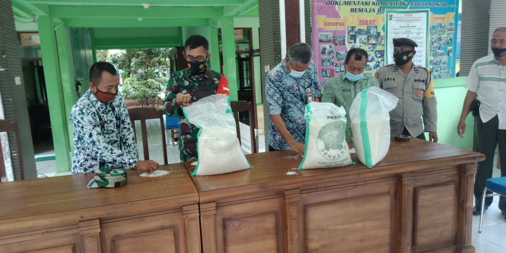 HarianJatim.com Tuban-Bertempat di Pendopo Kecamatan Bangilan Pihak Dinas Sosial yang di pimpin Langsung Oleh PLT Dinas Sosial di dampingi Forkopimca Kecamatan Bangilan mengecek kualitas Komoditi Beras Untuk Program Bantuan Pangan Non Tunai ( BPNT),Kamis (15/10/2020)