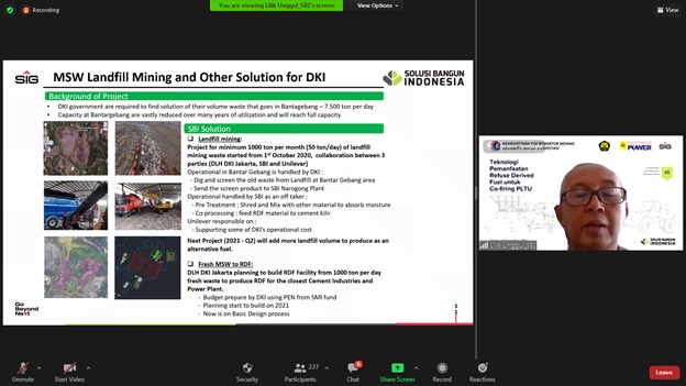 HarianJatim.comTuban-Kementerian Koordinator Kemaritiman dan Investasi (Kemenko Marves), bersama dengan Direktorat Jenderal EBTKE Kementerian ESDM dan PT Semen Indonesia (Persero) Tbk – SIG, melalui anak usahanya, PT Solusi Bangun Indonesia Tbk (SBI) menyelenggarakan Sustainable Development Webinar Series: Teknologi Pemanfaatan Refused Derived Fuel (RDF) untuk Co-Firing PLTU, Selasa 24 November 2020.