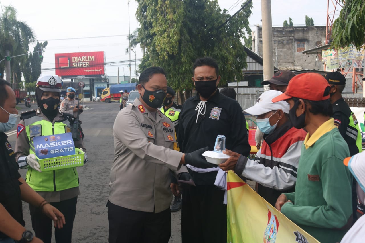 Kapolres Bojonegoro bersama-sama pejabat utama Polres Bojonegoro, Bojonegoro Kampung Pesilat (BKP), Senkom Polri melaksanakan kegiatan Jum’at Berkah dengan membagikan nasi kotak dan masker kepada warga masyarakat disekitaran Terminal Bus Rajekwesi dan jalan Veteran Kecamatan Kota Bojonegoro Kabupaten Bojonegoro.