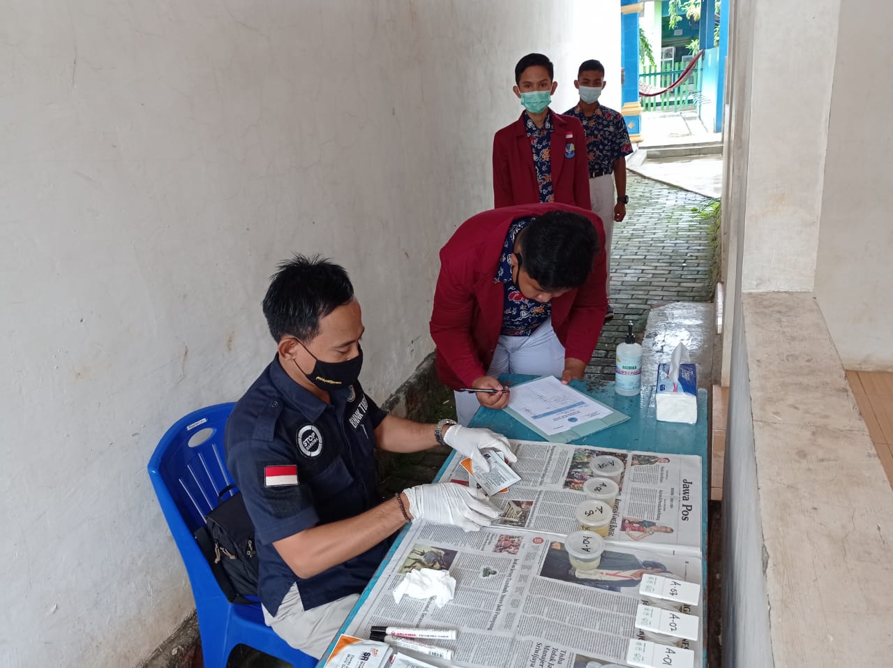 HarianJatim.comTuban– Setelah Menggelar kegiatan Edukasi dan informasi P4GN di Satuan Pendidikan SMAN 1 Jatirogo yang bekerjasama dengan pihak Badan Narkotika Nasional ( BNN) Kabupaten Tuban perwakilan Siswa-Siswi SMAN 1 Jatirogo mengikuti Tes Urine ,Kamis (10/12/2020)