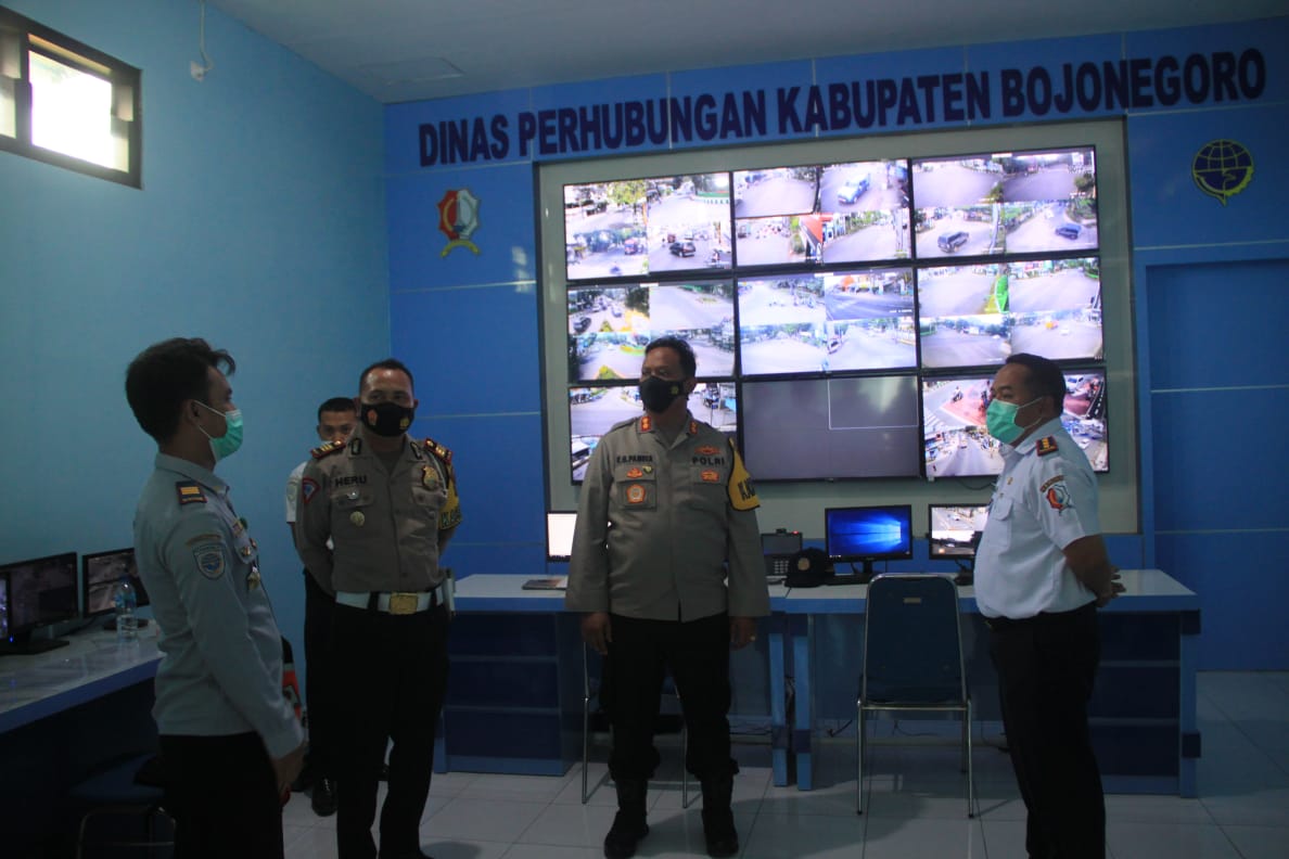 Kapolres Bojonegoro, AKBP EG Pandia, SIK, MM, MH yang didampingi Kasat Lantas Polres Bojonegoro, AKP Heru Sudjio Budi Santoso, SH melaksanakan koordinasi dan pengecekan perangkat sebagai salah satu kesiapan perangkat pendukung untuk melakukan penerapan Electronic Traffic Law Enforcement (ETLE) atau Tilang Elektronik di Dinas Perhubungan (Dishub) Kabupaten Bojonegoro jalan Pattimura, Rabu (10/02/2021) tadi siang.