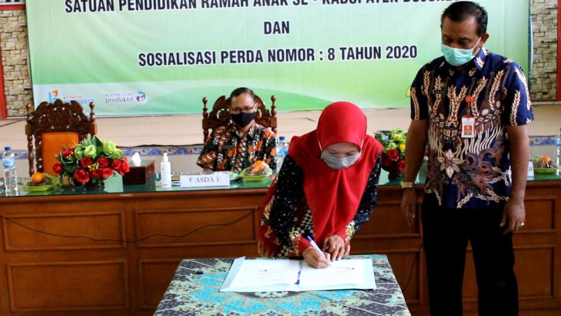 HarianJatim.comBojonegoro-Dinas Pendidikan Kabupaten Bojonegoro menggelar kegiatan Deklarasi Satuan Pendidikan Ramah anak serta mensosialisasikan perda no 8 tahun 2020 tentang penyelenggaraan pendidikan di kabupaten Bojonegoro,Kamis (1/04/2021)