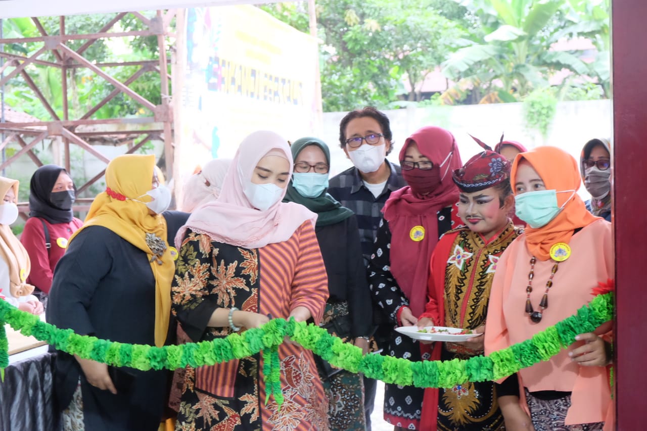SIDOARJO – Ketua TP.PKK Kabupaten Sidoarjo Sa’adah Ahmad Muhdlor membuka Pameran Seni Rupa Bertajuk Srikandi Bertaut di Kantor Dewan Kesenian, 3/4.