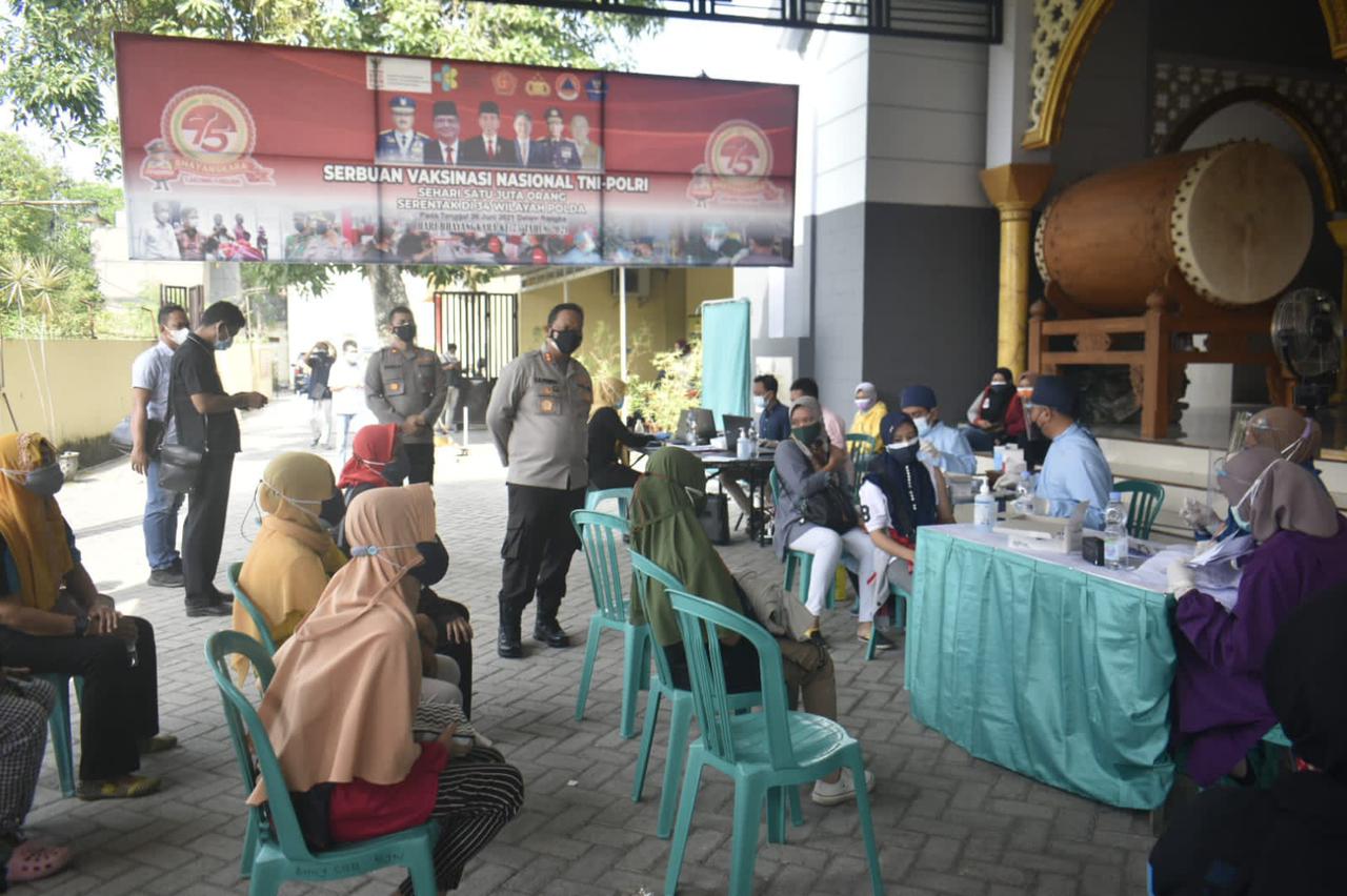 Bojonegoro-harianjatim.com. Polres Bojonegoro menggelar gerai vaksinasi TNI – Polri di halaman masjid Al Ikhlas Polres Bojonegoro. Pelaksanaan vaksinasi massal dosis tahap 2 ini untuk masyarakat umum yang sebelumnya sudah melaksanakan vaksinasi dosis tahap 1 di tempat yang sama.