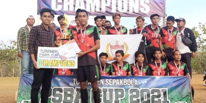 Sumenep-HarianJatim.com, Persatuan Sepak Bola Gelaman (Persegel) Desa Gelaman Kecamatan Arjasa, Kabupaten Sumenep, Madura sabet juara I pada pertandingan PSBA CUP 2021, Rabu (08/09/21) di lapangan sepak bola batu lawang Desa Bilis-Bilis Arjasa, Kangean, Sumenep Madura
