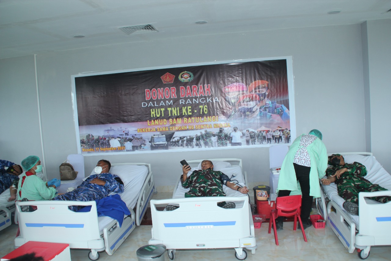 Komandan Lanud Sam Ratulangi Marsma TNI Mohamad Satriyo Utomo S.H., dalam wawancaranya dengan media menyatakan, Lanud Sam Ratulangi sesuai dengan instruksi dari Pimpinan TNI yakni dari Mabes AU dan khususnya dari Koopsau II, melaksanakan Donor Darah dalam rangkaian memperingati HUT TNI ke-76. Dalam hal ini pelaksanaannya tidak hanya oleh TNI AU tapi melibatkan pula personel-personel dari TNI AD, TNI AL, Polri dan swasta serta masyarakat selain personel Lanud Sam Ratulangi sendiri sebagai koordinator kegiatan. Ini juga merupakan bentuk sinergitas antara Lanud Sam Ratulangi dengan RS Sentra Medika Minahasa Utara, yang kebetulan juga merayakan ulang tahunnya yang pertama. “Kegiatan ini akan bermanfaat bagi masyarakat yang membutuhkan. Apalagi ditengah pandemi Covid-19 ini, lonjakan permintaan kantong darah sangatlah tinggi. Oleh sebab itu, sangatlah tepat Pimpinan menginstruksikan kita menyelenggarakan kegiatan donor darah. Sehingga TNI menjadi dekat dan hadir untuk membantu masyarakat. Selain kegiatan donor darah, TNI akan mengadakan juga kegiatan bhakti sosial menjelang HUT TNI 5 Oktober nanti. Jadi, ini merupakan salah satu bukti kehadiran TNI ditengah masyarakat, dimana TNI membantu, meringankan beban masyarakat. Semoga setetes darah dapat menolong nyawa seseorang yang sedang membutuhkan,” ujar Marsma TNI M. Satriyo Utomo, SH.