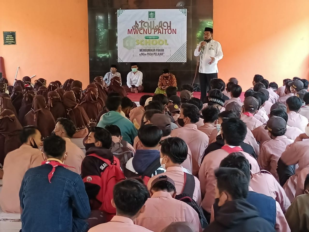 Paiton.HarianJatim.Com- Lembaga Kajian dan Pengembangan Sumber Daya Manusia (Lakpesdam) Majelis Wakil Cabang Nahdlatul Ulama Paiton, Probolinggo, Jatim, kembali melaksanakan kegiatan MWCNU Paiton Go To School, Jum’at pagi (01/10/21) di AULA SMA 1 Paiton Probolinggo.