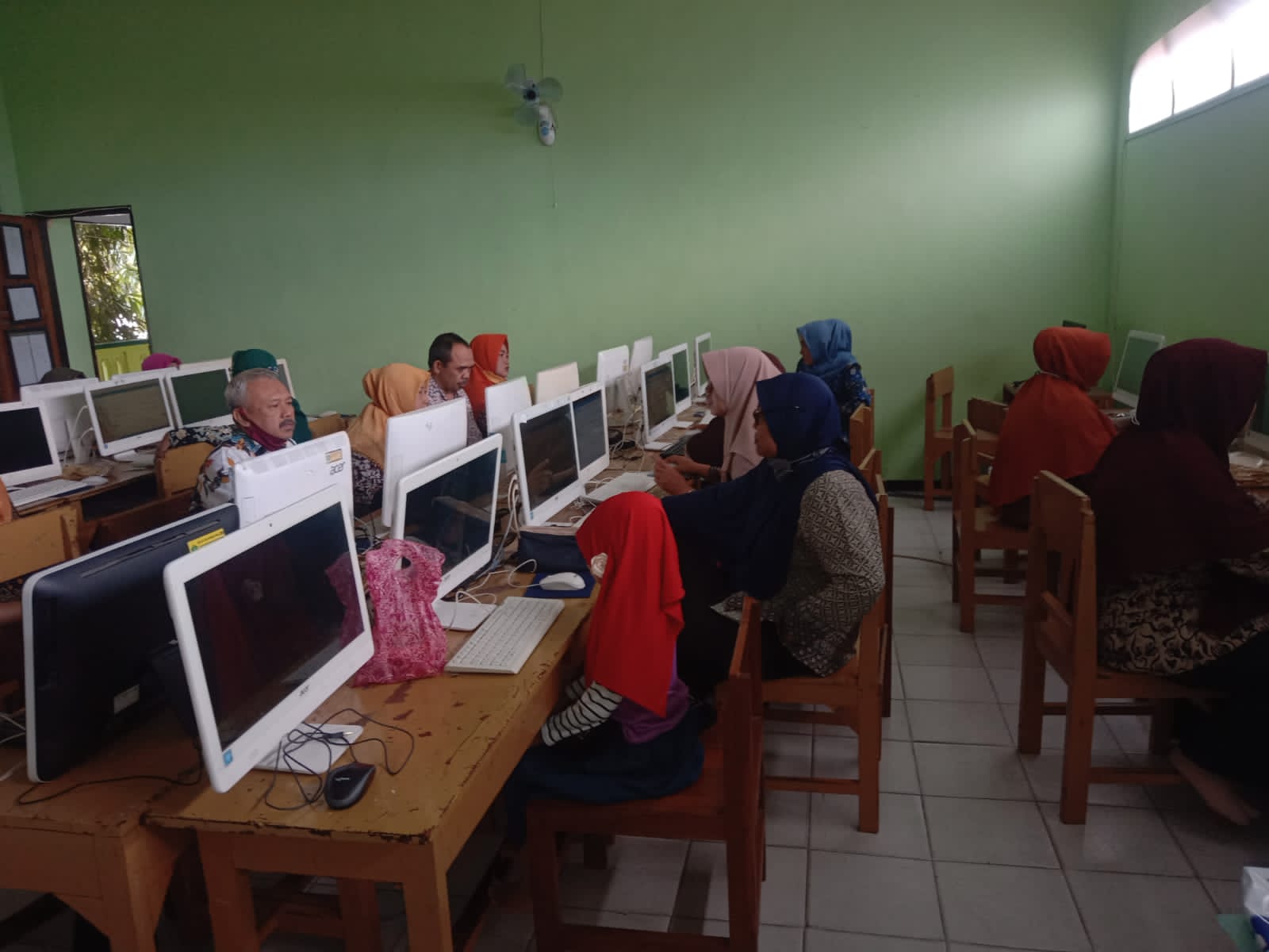 Tuban- HarianJatim.com, sebanyak 64 Pendidik dan Tenaga Kependidikan, sesuai dengan data EMIS MTsN 1 Tuban telah mengikuti Asesmen Kompetensi Berbasis Komputer (AKBK) bertempat di Laboratorium Komputer lantai 2. Untuk kelancaran dan kesuksesan pelaksanaan asesmen ini, madrasah menggunakan 3 ruang laboratorium komputer dan melibatkan 4 orang proktor dan teknisi, tiap ruang diawasi 1 pengawas ruang.