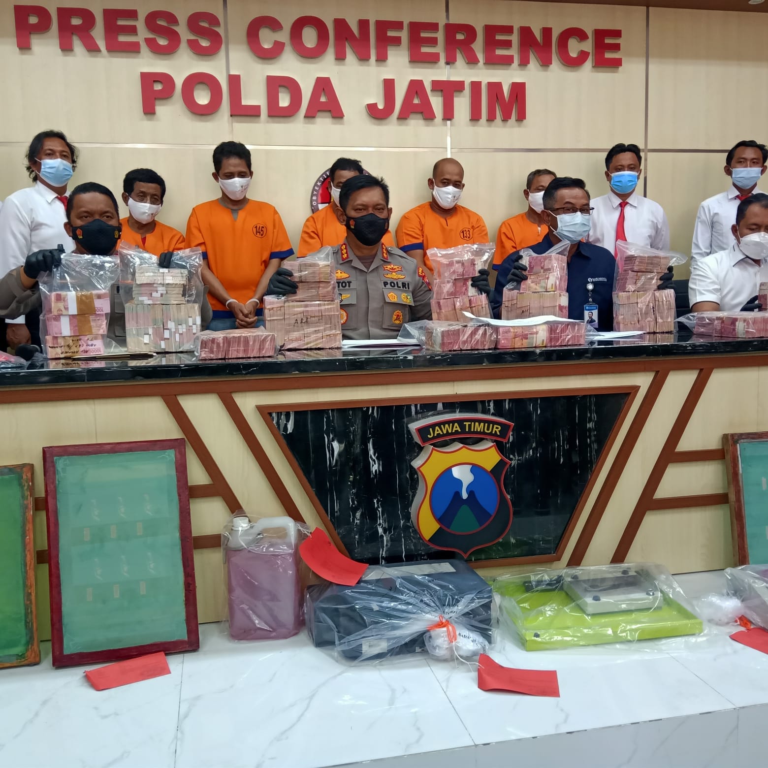 Surabaya – harianjatim.com, Polresta Banyuwangi, didukung Direktorat Reserse Kriminal Khusus, (Ditreskrimsus) Polda Jawa Timur, pada 16 September 2021, berhasil mengungkap peredaran uang palsu (upal) di wilayah Banyuwangi, serta rumah produksi senilai Rp 3,8 Milyar.
