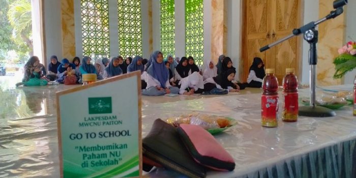 Ponirin Mika Ketua Lakpesdam Menyampaikan, Kegiatan yang diberi nama Go To School tersebut bertujuan untuk memberikan pemahaman ke-NU-an pada seluruh siswa di Kecamatan Paiton.
