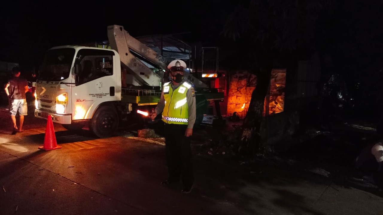 Mendapati informasi dari warga, petugas Kepolisian langsung mendatangi dan berupaya membersihkan batang pohon bersama Badan Penanggulangan Bencana Daerah (BPBD) Bojonegoro dan masyarakat. Arus lalu lintas di jalan Monginsidi sempat ditutup dan dialihkan ke jalan KH. Al Rosyid.