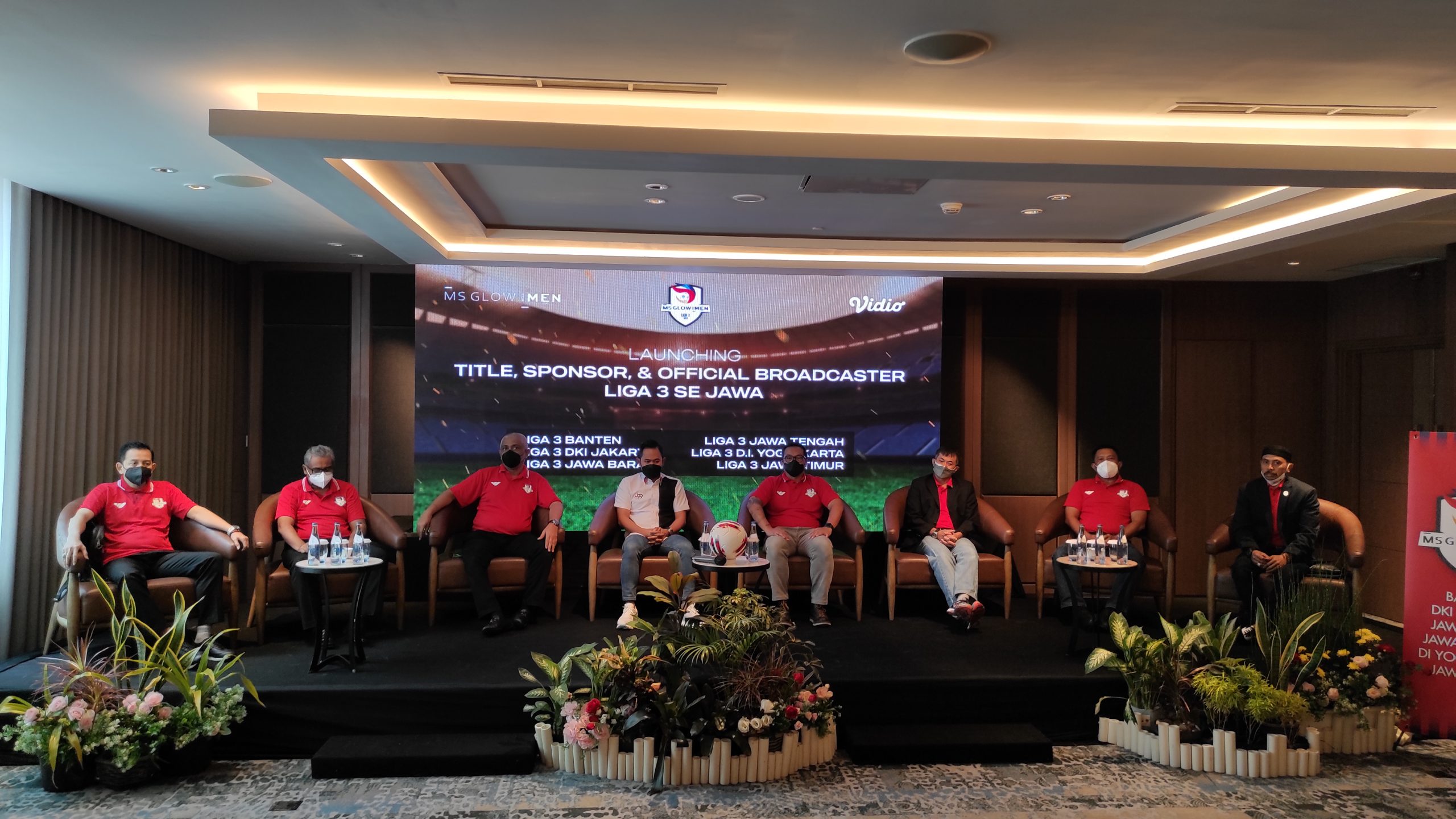 Surabaya – harianjatim.com, Enam Asosiasi Provinsi (Asprov) Persatuan Sepak Bola Seluruh Indonesia (PSSI) se-Jawa mendapat dukungan dari MS Glow For Men sebagai sponsor utama serta Emtek Group dalam mendukung gelaran Liga 3. Dukungan ini secara resmi diluncurkan serentak di Hotel Double Tree, Surabaya, Sabtu 23 Oktober 2021.