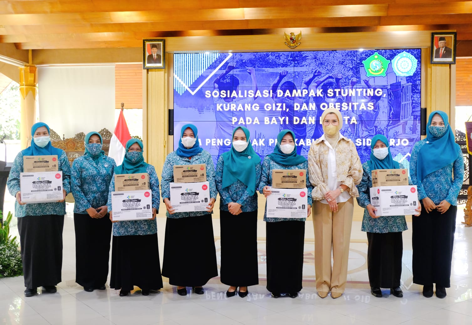 “Dari 10 provinsi tertinggi angka stunting, Kabupaten Sidoarjo tidak termasuk daerah dengan stunting tinggi. Namun, angka kecil tersebut tidak menjadikan Sidoarjo bebas stunting, upaya pencegahan harus terus dilakukan untuk mengurangi resiko anak dengan kurang gizi, obesitas dan stunting,” terang Ketua TP PKK Kabupaten Sidoarjo, Sa’adah Ahmad Muhdlor Ali.