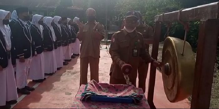Prosesi Upacara Pelantikan pengurus OSIS SMPN 1 Sokosewu di hadiri seluruh guru/staf dan seluruh Siswa SMPN 1 Sokosewu dengan tetap menjaga protokol Kesehatan Pencegahan Covid-19 Secara Ketat