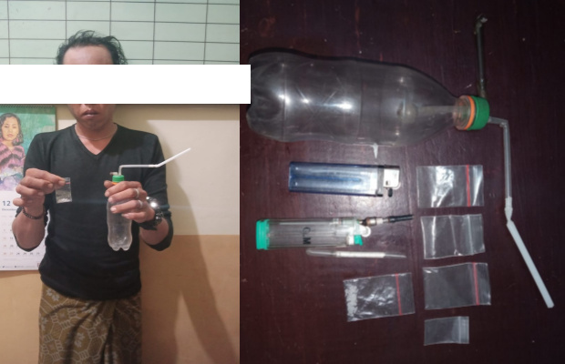 Menurut Widi, petugas mengamankan barang bukti berupa sebuah bong terbuat dari botol plastik terdapat 2 lubang dan tersambung sedotan warna putih, satu poket/kantong plastik klip kecil berisi Narkotika jenis sabu berat kotor masing-masing ± 0,30 gram.
