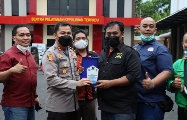 Jember – Harianjatim.com, Komunitas Ojek Online (Ojol) yang tergabung dalam Forum Komunikasi Jember Online Bersatu (FK-JOB) mendatangai Mako Polres Jember, Jawa Timur, Kamis, (17/11/2021).