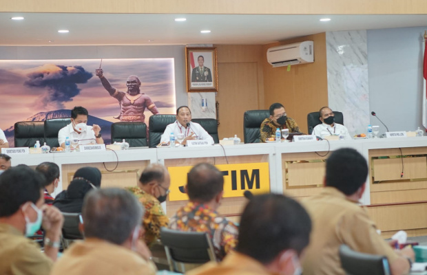 Ketua Satgas PEN Bareskrim Polri, Brigjen Nurwidiyanto bersama tim, melakukan tatap muka dengan Kementerian Keuangan, Aparatur Pengawas Internal Pemerintah (APIP) Propinsi Jatim.