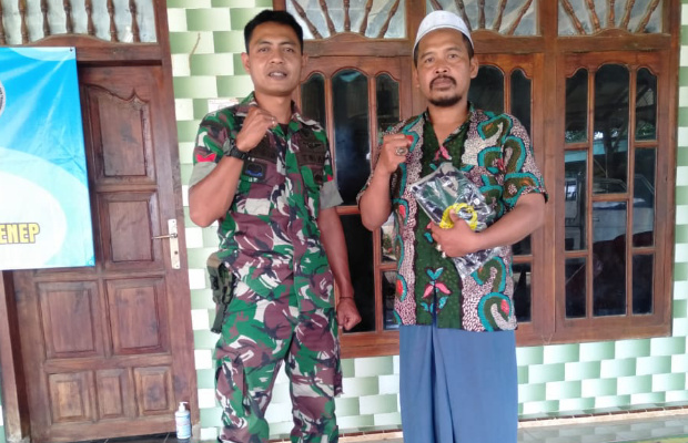 Kepala Desa Montorna Kecamatan Pasongsongan, Junaidi (kiri) bersama Anggota TNI. (Foto : Kades Montorna for Harianjatim.com)