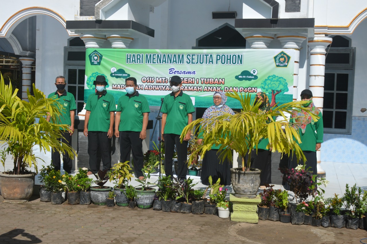 Hari ini Organisasi Siswa Intra Sekolah (OSIS) MTsN 1 Tuban melaksanakan salah satu programnya yaitu “Menanam Sejuta Pohon”, Senin (10/01/2022). Dengan menanam berbagai tanaman di dalam lingkungan Madrasah akan menambah rindang, indah, dan asri. Hal ini akan juga berdampak positif pada proses belajar mengajar di Madrasah. Siswa akan merasa sejuk, senang, tentram dalam belajar.