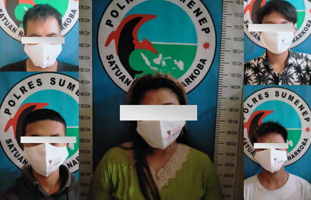Lima orang itu diantaranya AU (21) warga Desa Pamolokan, Kecamatan Kota, SM (27) warga Desa Bringin, Kecamatan Dasuk, IF (20) warga Desa Gadding, Kecanatan Manding, FW (23) warga Desa Bangkal, Kecamatan Kota Sumenep, dan LQ (29) perempuan asal Desa Pamolokan, Kecamatan Kota Sumenep.