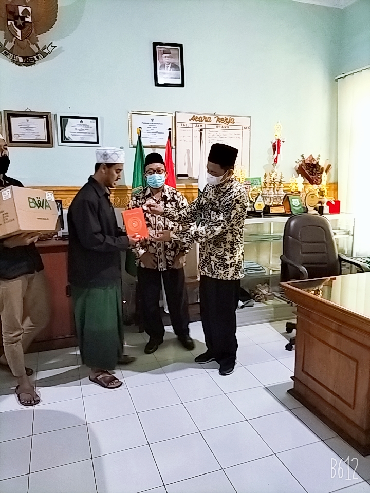 Tuban-HarianJatim.com,10 al-qur’an Tahfidz diberikan ke MTsN 1 Tuban oleh Badan Wakaf Al-qur’an Indonesia cabang Tuban, Sabtu (22/01/2022). Bantuan ini diterima langsung oleh Kepala Madrasah, Ali Maghfur di ruangannya.Ia mengatakan terimakasih yang sebesar-besarnya. 10 Al-qur’an itu akan dipakai pada pembelajaran Tahfidz siswa/i yang mengikuti jam tambahan materi ini