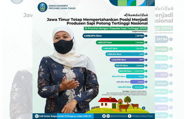 “Dengan hal tersebut, hingga saat ini Jawa Timur terus menjadi produsen sapi potong tertinggi se Nasional hingga tahun 2021,” tulis lagi.