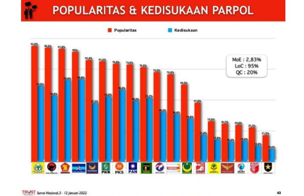 Berikut 5 besar hasil survei elektabilitas, popularitas, dan kedisukaan yang dilakukan Trust Indonesia: