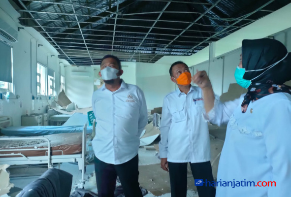 Sumenep – Harianjatim.com, Plafon ruang rawat inap atau perawatan bedah lantai 2 di Rumah Sakit Umum Daerah (RSUD) dr. H. Moh. Anwar, Sumenep, Jawa Timur ambruk, Rabu, (9/2/2022) sore.