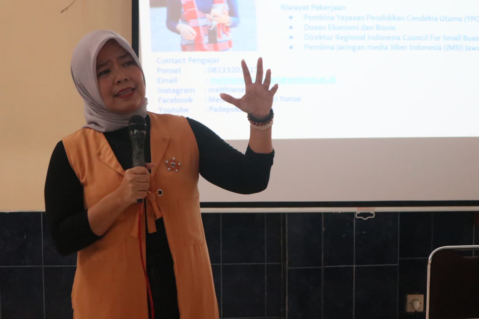 Ketua STIKOSA – AWS, Dr. Meithiana Indrasari, S.T., M.M., yang akrab dipanggil Mei, menjelaskan sasaran kerjasama STIKOSA – AWS dengan BPSDMP Surabaya Kementerian Kominfo RI dari kegiatan pelatihan ini adalah untuk masyarakat Surabaya, dan pihaknya mengembangkan aware atas media digital juga kemanfaatannya, untuk mendorong semua masyarakat pelaku usaha dan bisnis yang ada di Surabaya, agar berproduktif usaha dan bisnis melalui media digital.