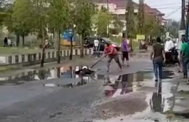 Sebelumnya viral video yang memperlihatkan aksi penembakan. Suara tembakan terdengar hingga beberapa kali dan akhirnya warga yang mengenakan jaket warna hitan dan helem warna putih terkapar di tengah badan jalan raya.