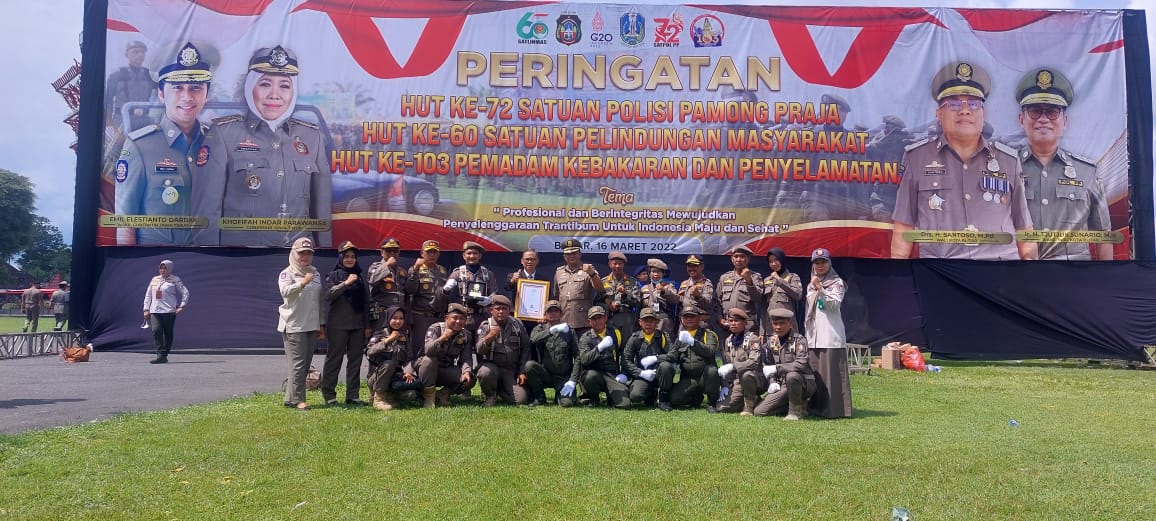 Bojonegoro-harianjatim.com. Bupati Bojonegoro terima penghargaan karya bhakti peduli satuan polisi pamong praja tahun 2022. Penyerahan penghargaan dilaksanakan bersamaan dengan Peringatan HUT ke-72 Satuan Polisi Pamong Praja, HUT ke-60 Satuan Pelindungan Masyarakat, HUT ke-103 Pemadam Kebakaran dan Penyelamatan di Alun-alun Kota Blitar, Rabu (16/03).