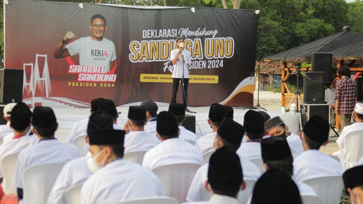 “Kami memilih Bapak Sandiaga karena mampu bisa menjawab permasalan ekonomi dari berbagai elemen yang ada saat ini,” kata Ramadhan Mustika Pamungkas, Ketua Sahabat SandiUno Madura Raya, di Rumah Makan Long Gledhek, Bangkalan, Jawa Timur, Minggu (10/4/2022).