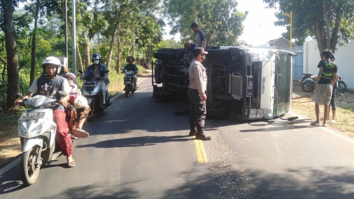 “Diduga pengemudi mobil barang tidak sempat mengerem sehingga mobil yang dikendarainya dibanting ke arah kanan jalan (jalur timur) dan mengalami oleng atau hilang kendali hingga mobil guling,” jelas Widi.