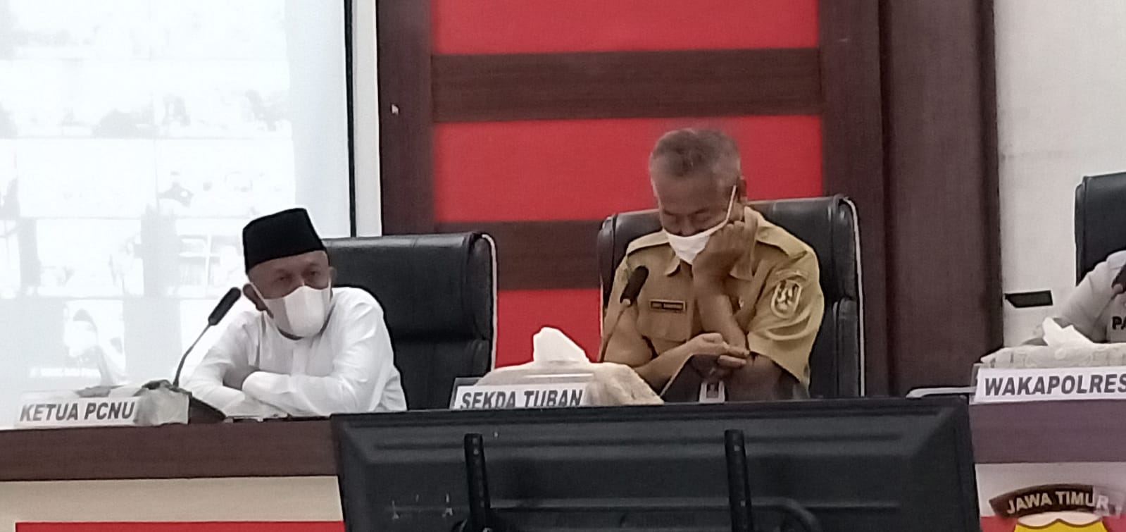Tuban-harianjatim.com. Kepala Kantor Kementerian Agama Kabupaten Tuban mendukung penuh program Sejuta Vaksin yang dicanangkan oleh pemerintah, dengan menghadiri secara langsung rapat koordinasi 1 juta Vaksin Booster di aula PDDO Polres Tuban, Selasa, (19/04/2022). Acara yang dipimpin langsung oleh Waka Polres Tuban ini dihadiri oleh Asisten Pemerintahan, Kasdim, Dinas Kesehatan, Sekretaris PCNU, Ketua cabang Pagar Nusa, Ketua cabang Ansor, dan beberapa Badan otonom NU.