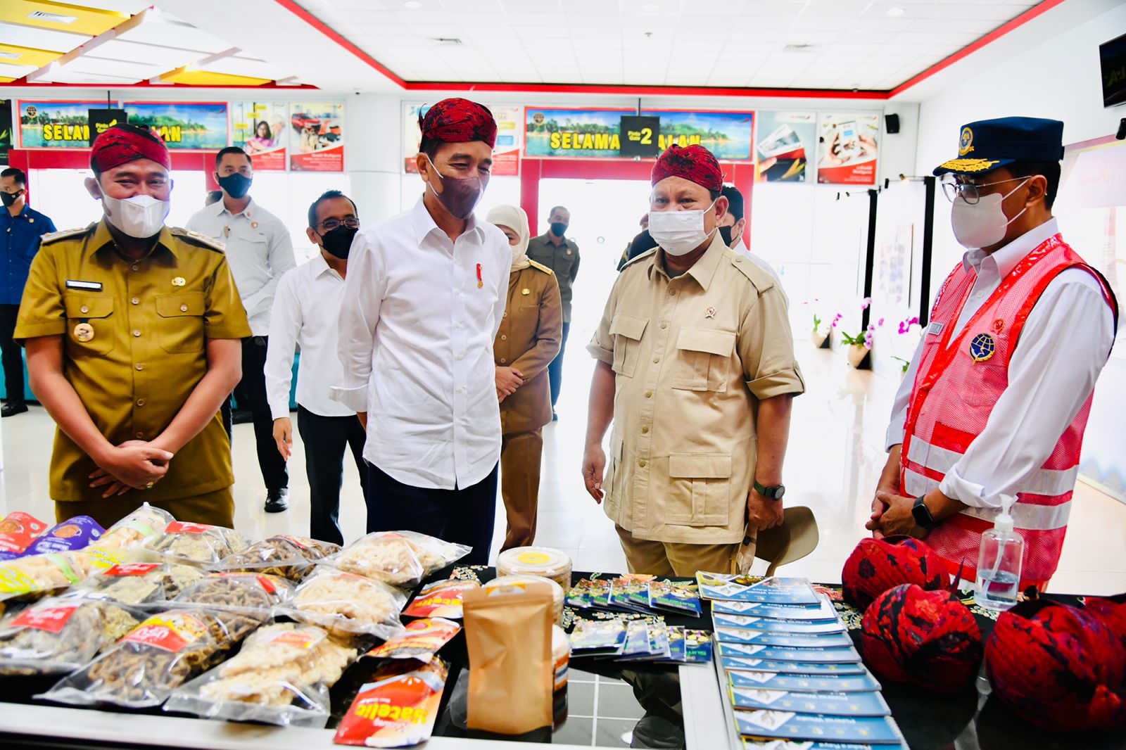 Setelah peninjauan panel dan menerima penjelasan dari Dirjen Perhubungan Udara Kementerian Perhubungan, Presiden kemudian menuju stan kerajinan lokal khas Madura yang berada di ruang tunggu bandar udara tersebut dan membeli dua kain batik dan satu udeng blangkon.