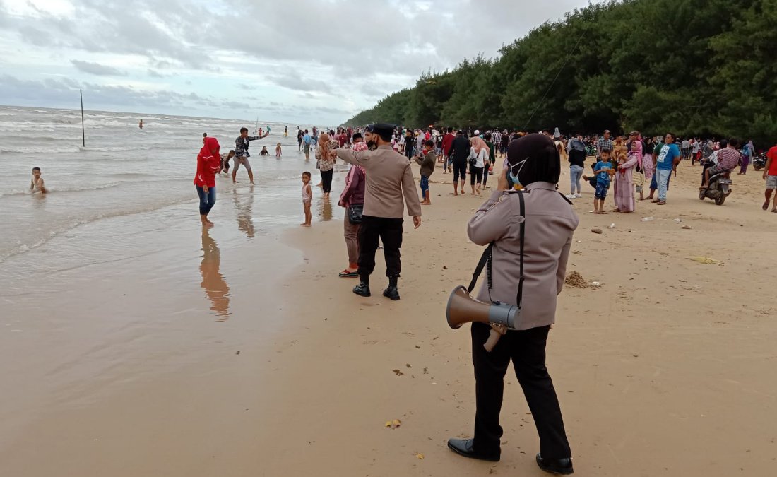 Personel Kepolisian Polres Sumenep saat melakukan pengamanan di salah satu destinasi wisata Sumenep. (Foto : HMS)