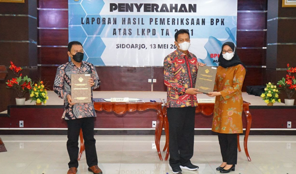 Hasil audit BPK tersebut diterima Bupati Banyuwangi Ipuk Fiestiandani dan Wakil Ketua DPRD Banyuwangi Ruliyono di kantor BPK Jawa Timur, Jumat (13/5/2022). Penyerahan dilakukan oleh Kepala BPK Perwakilan Jatim, Joko Agus Setyono.