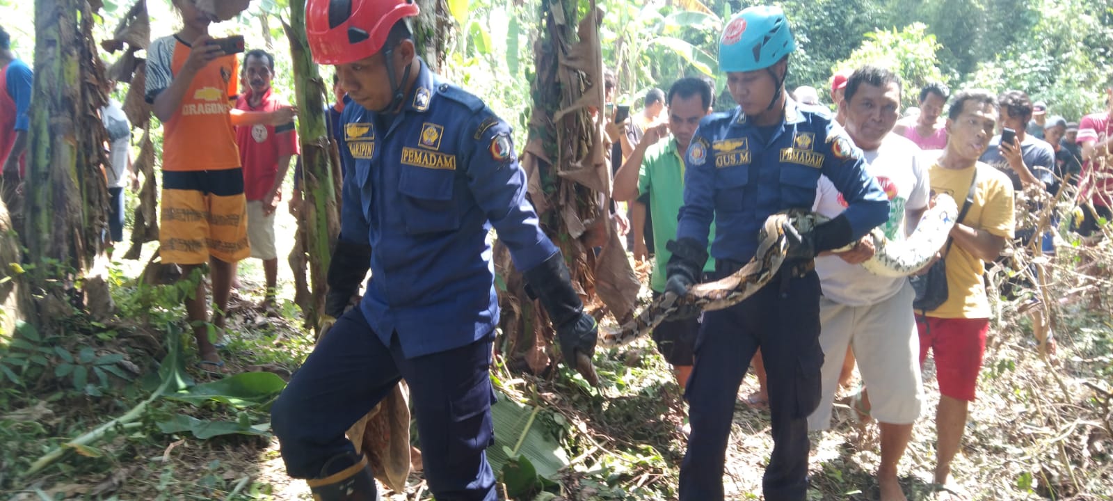 Menurut Kabid pemadam kebakaran dan penyelematan Adi Winarto mengatakan bahwa pihaknya menerima informasi adanya ular Sanca Kembang di pekarangan rumah pada Minggu pagi sekitar pukul 09.50 wib