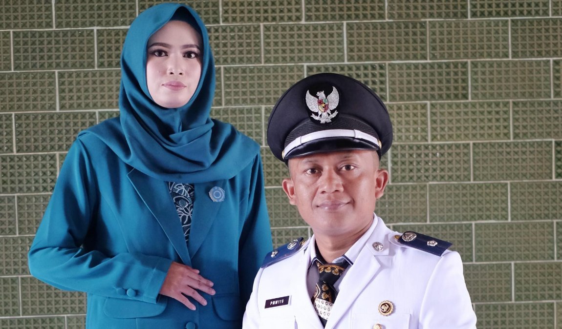 Kepala Desa Bajang, Kecamatan Pakong, Moh. Mokri saat foto bersama isterinya usai pelantikan. (Foto : Yanto/harianjatim.com)