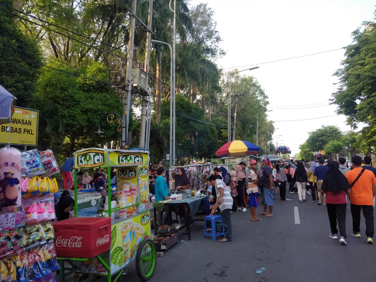 “Cukup ramai ini, hasilnya lumayan lah pokoknya. Bahkan saya juga baru jualan setelah CFD dibuka, sebelum pandemi malah belum jualan nasi,” ujar perempuan yang sehari-harinya berjualan di Pasar Banjarejo.