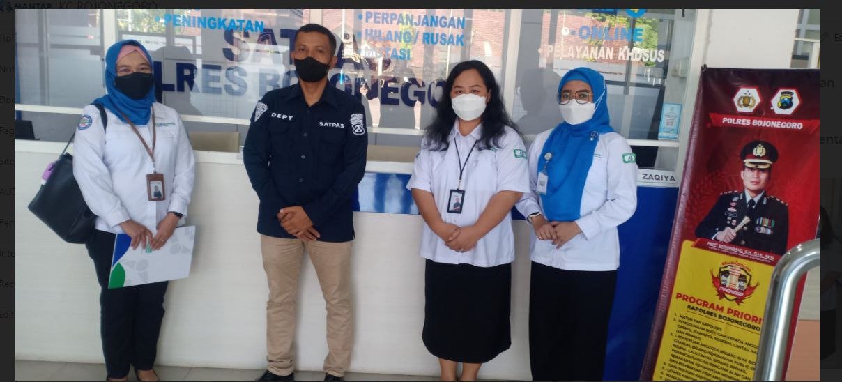 Bojonegoro,harianjatim.com, – Sebagai wujud Implementasi Instruksi Presiden (Inpres) Nomor 1 Tahun 2022, BPJS Kesehatan Cabang Bojonegoro bersama dengan Kepolisian Resor Bojonegoro bekerjasama untuk mendorong jumlah kepesertaan program Jaminan Kesehatan Nasional (JKN). Selanjutnya, Polres Bojonegoro mulai melakukan edukasi kepada pemohon SIM dan STNK untuk dapat menyertakan kartu pesertaan JKN berstatus aktif sebagai syarat pengajuan pembuatan.