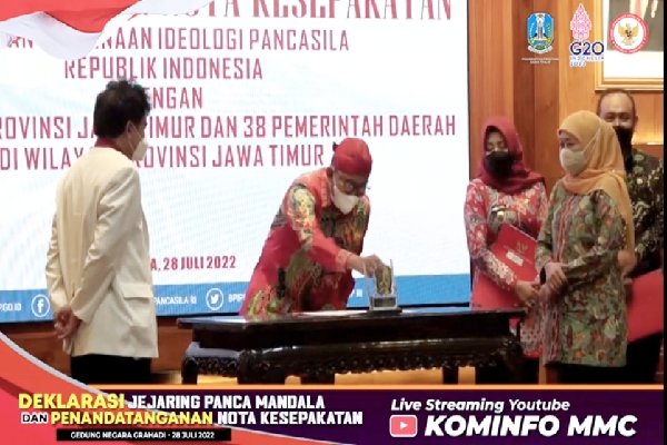Dalam kegiatan penyerahan piagam ini juga di Rangkai acara penandatangan Nota Kesepakatan BPIP dengan Pemrov Jatim