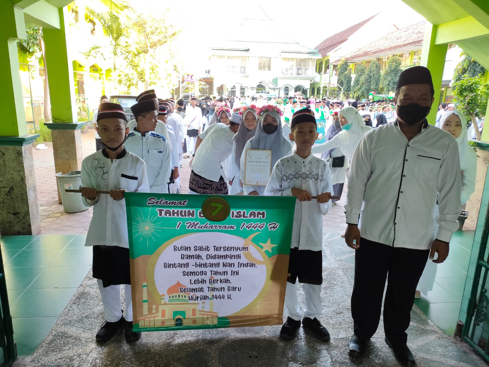 Selanjutnya, ia berpesan bahwa kita harus bisa meneladani hijrah Rasulullah Muhammad SAW, yaitu hijrah dari yang kurang baik menjadi lebih baik lagi. Kegiatan pawai ta’aruf ini mengambil tema “Jadikan Tahun Baru Islam sebagai momentum perbaikan diri menjadi pelajar yang terampil, aktif, kreatif dan berakhlakul Karimah”. Ia juga meminta siswa setiap kelas untuk menyanyikan lagu-lagu islami disepanjang perjalanan.