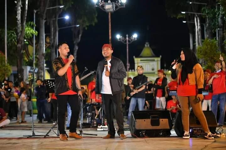 “Pertama saya ingin menyampaikan pada generasi muda yang suka musik dan seni, saya tunjukkan kalau bupati sudah bisa berkarya,” katanya di depan fansnya.
