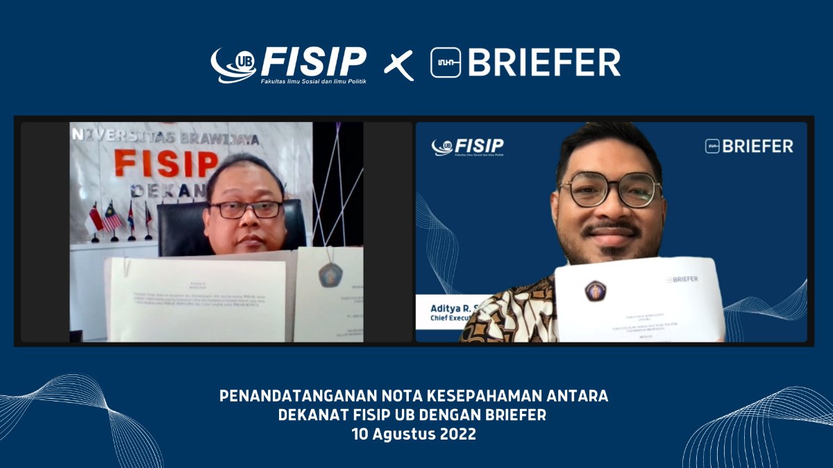 Kerjasama dimulai dengan penandatangan nota kesepakatan oleh Aditya Sani dengan Dr. Sholih Mu’adi secara daring. Kolaborasi BRIEFER dan FISIP UB meliputi kerjasama dalam perekrutan ahli, profesional dan spesialis di platform BRIEFER. Tidak hanya itu, kedua belah pihak juga menyepakati terkait penyediaan ruang praktik magang, pelaksanaan seminar, kuliah umum serta penelitian.