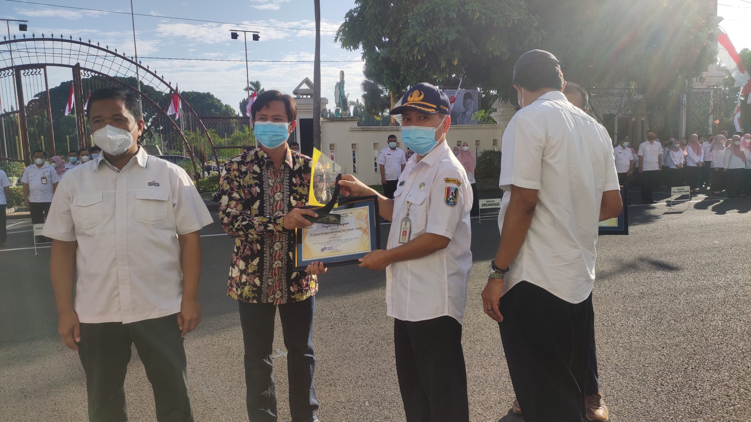 Tuban, 11 Agustus 2022. PT Solusi Bangun Indonesia Tbk (SBI) Pabrik Tuban meraih penghargaan Terbaik II Lomba Antar Perusahaan dalam Bidang Perindustrian, Perizinan dan Ketenagakerjaan, dan Lingkungan Hidup yang diadakan oleh Pemerintah Kabupaten Tuban dalam rangka Hari Jadi Tuban ke-728 tahun 2021 lalu. Penghargaan diberikan oleh Budi Wiyana, Sekretaris Daerah Kabupaten Tuban, Rabu 10 Agustus 2022 di Kantor Pemerintahan Kabupaten Tuban.