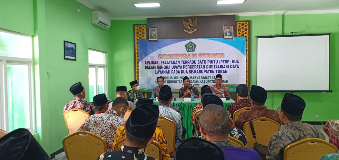 Tuban-harianjatim.com.Satu upaya inovasi kembali dibuat oleh Kementerian Agama Kabupaten Tuban, kali ini dengan mengadakan bimbingan teknis aplikasi PTSP (Pelayanan Terpadu Satu Pintu) kepada semua KUA dan Satker.