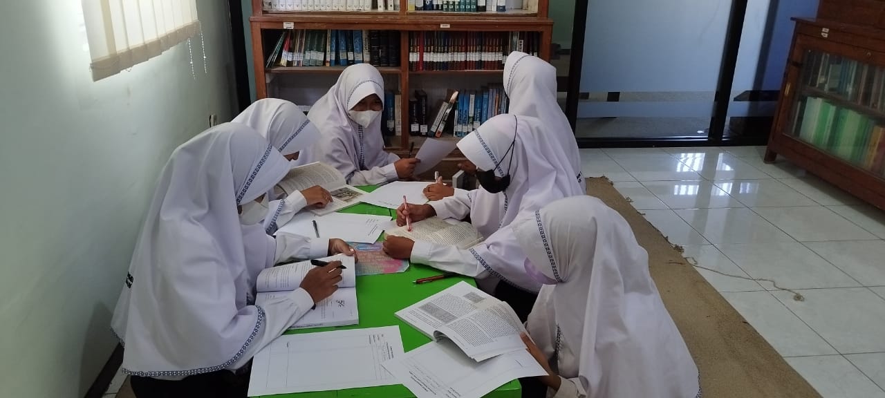 Siswa/i MTsN 1 Tuban, terlihat antusias dalam menerima penjelasan, dan dilanjutkan mencari buku dan melakukan resume bacaan.