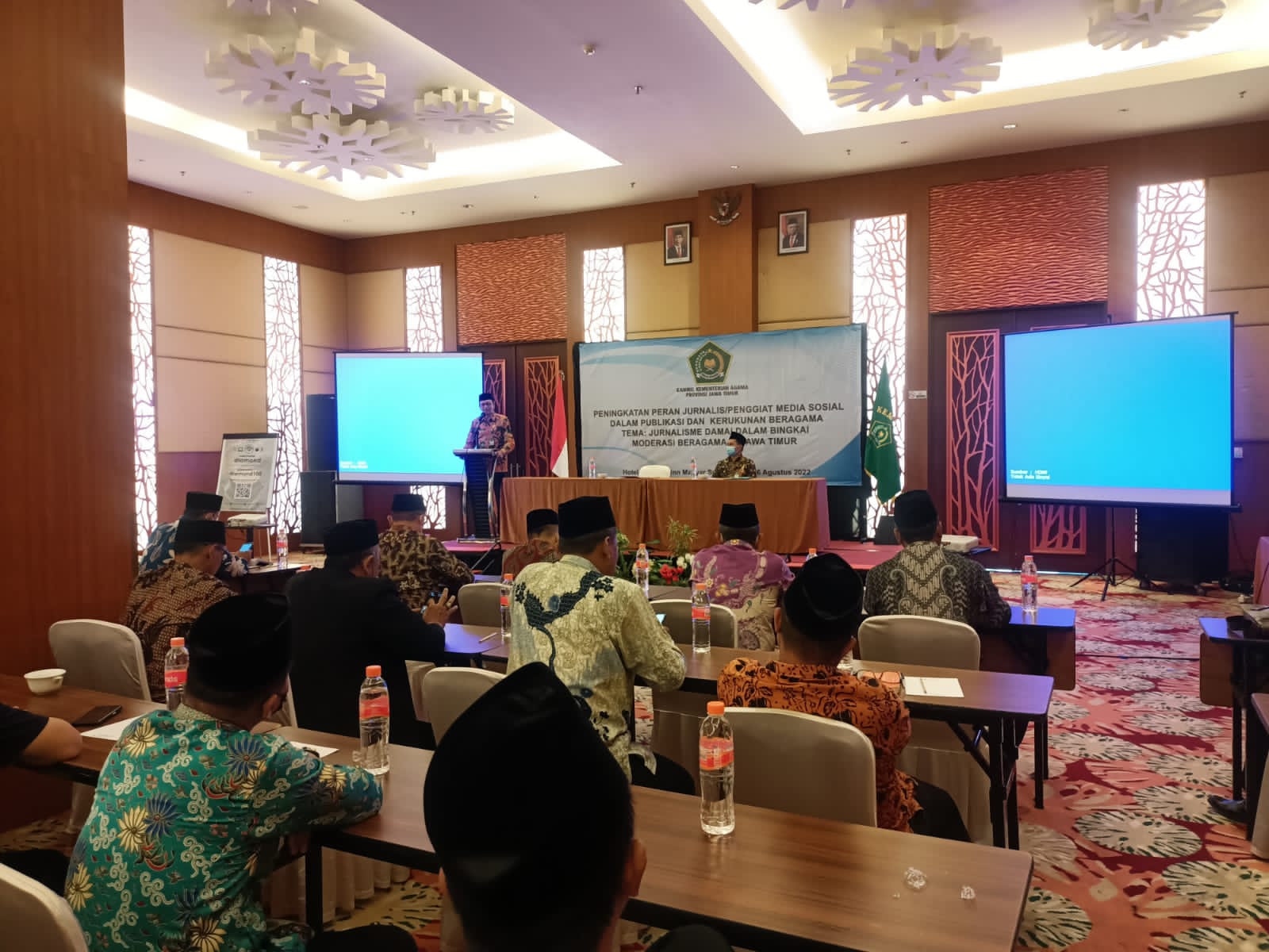 Surabaya -harianjatim.com.Mewakili Kepala Kantor Wilayah Kementerian Agama Provinsi Jawa Timur, Kepala Bagian Tata Usaha Kanwil Kemenag Jatim, Nawawi, membuka kegiatan Peningkatan Peran Jurnalis /Penggiat Media Sosial dalam Publikasi dan Kerukunan Beragama di hotel Swiss Bellin Manyar Surabaya, Rabu malam, (24/08/2011). Acara ini diikuti Kasubag TU, Pranata/Pelaksana Humas se Jawa Timur termasuk kabupaten Tuban dan beberapa dari media.